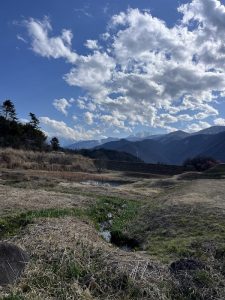 さあ帰ろうとした時に親方の弟のマナブさんが車の前輪を側溝に落とす。ギックリ腰なんていってられない。養魚池に置いてある砂利袋や材木を使ってなんとか脱出成功。